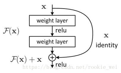 该结构增加了一个identity mapping,将原始所需要学的函数H(x)转成F(x)+x。