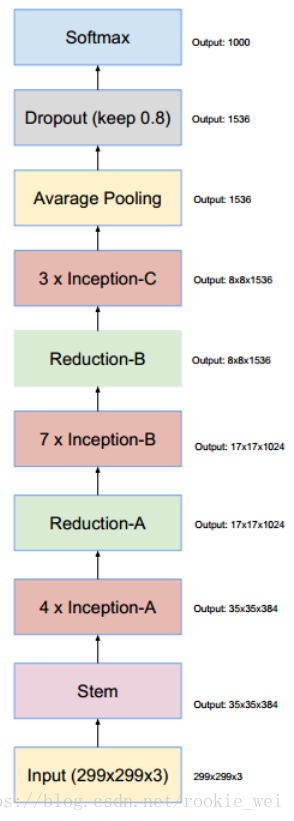 Inception的结构是将1×1、3×3、5×5的卷积核对应的卷积操作和3×3的滤波器对应的池化操作堆叠在一起,增加了网络的宽度和深度。Google后来又对该模型进行了改进,提出了Inception V1、V2、V3、V4模型,分别如下所示,