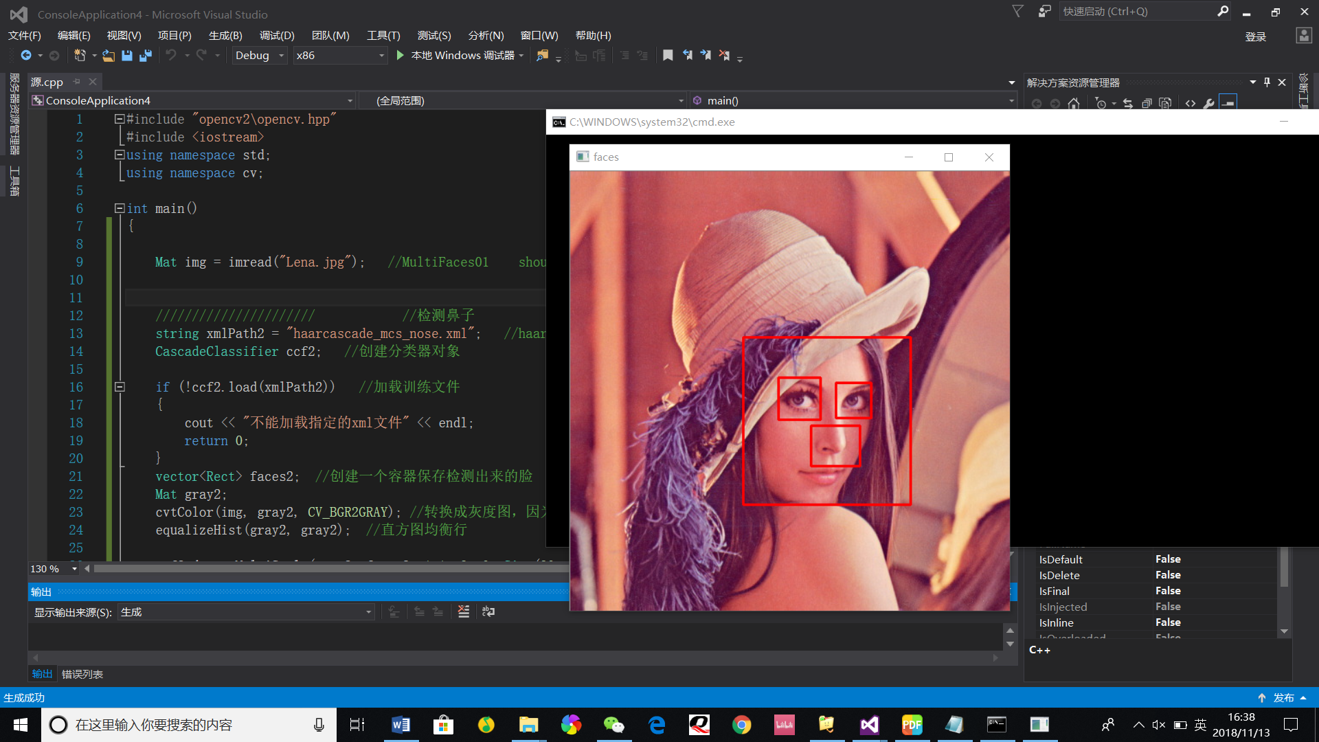 opencv 结合 鼻子、眼睛、脸部 --人脸检测源代码