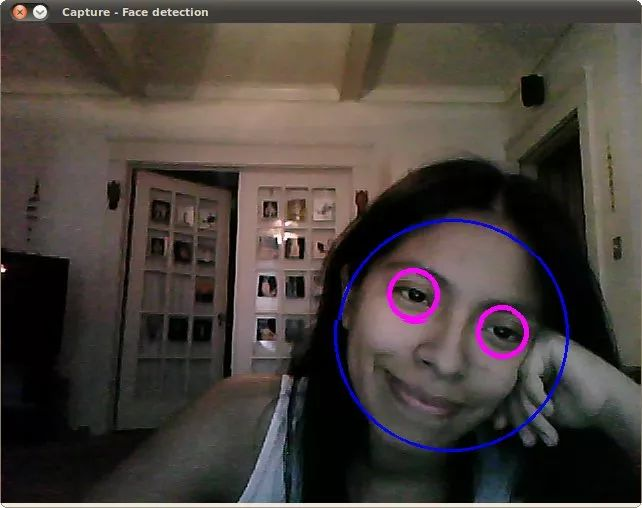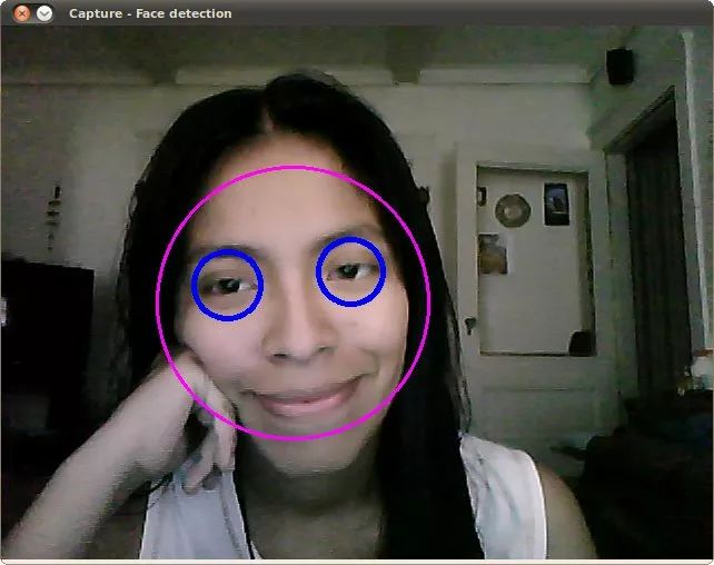 2.这是使用文件lbpcascade_frontalface.xml(经过LBP训练)进行人脸检测的结果。对于眼睛,我们继续使用本教程中使用的文件。