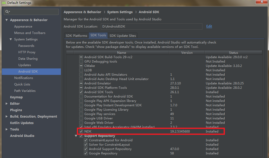 这时候我们需要把ndk更新为r16版本即可解决,