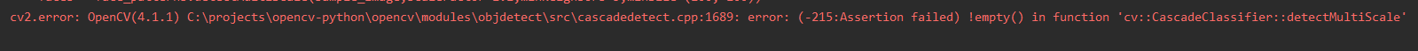 我是靠谱客的博主 土豪寒风,这篇文章主要介绍python_opencv例程遇到empty() in function 'cv::CascadeClassifier::detectMultiScale'解决办法,现在分享给大家,希望可以做个参考。