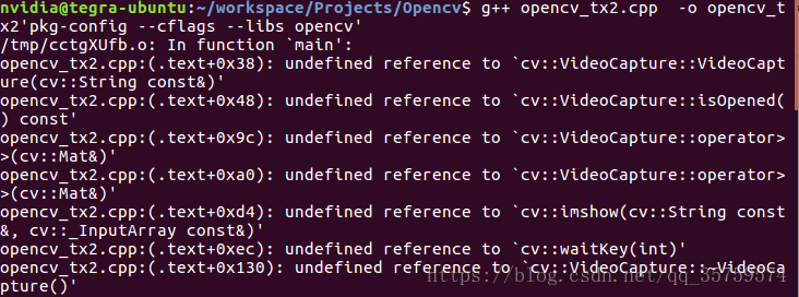 g++ opencv_tx2.cpp -o opencv_tx2 `pkg-config --cflags --libs opencv`