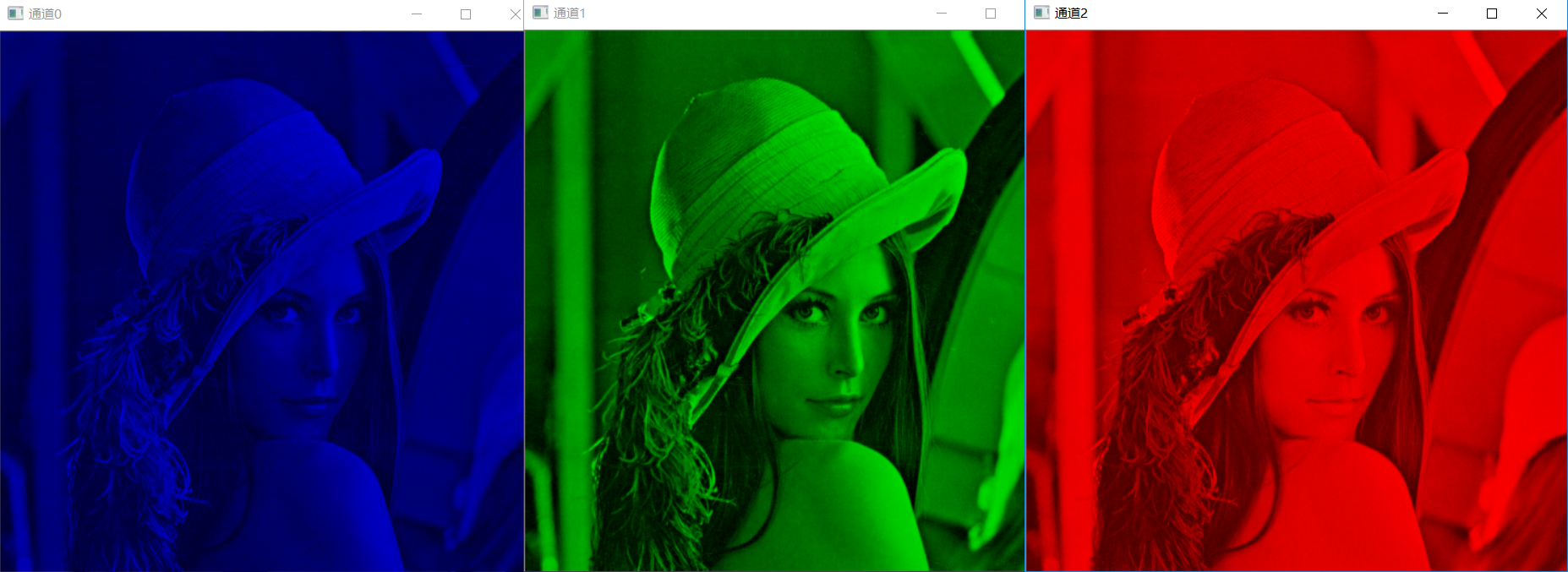 split(orig, m); //提取通道信息,但是当未把其他通道设置为0时显示为灰度图,但各通道信息不同