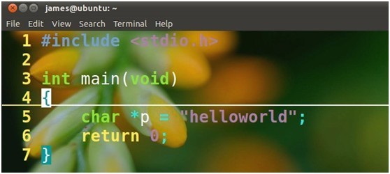 如图1-1所示,在C程序中定义了一个局部的字符指针变量p指向一个字符串常量,其中p由于是局部变量被放在栈区,而字符串常量"helloworld"在汇编中被放入.rodata段(图1-2),在编译后生成的ELF格式文件中也将被放入.rodata段(图1-3)