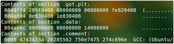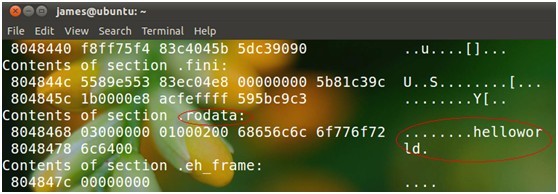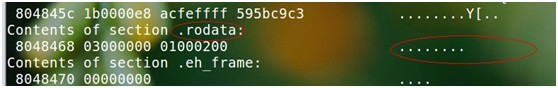 因此在编译生成的ELF格式文件中的.rodata段也将不会存储该字符串常量: