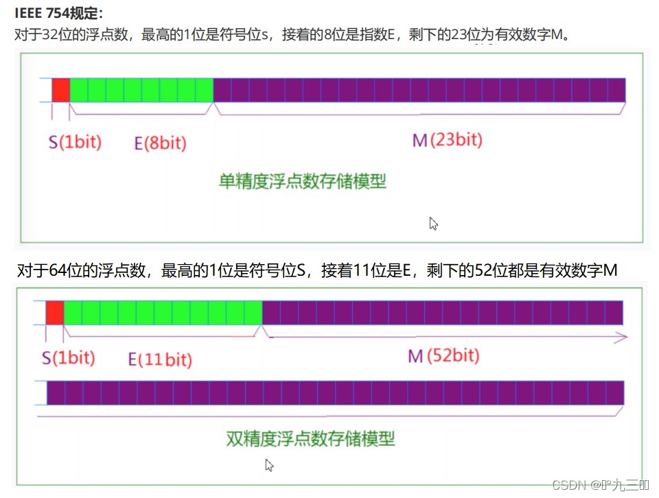 - (-1)^S表示符号位,S=0时,表示正数;S=1时,表示负数