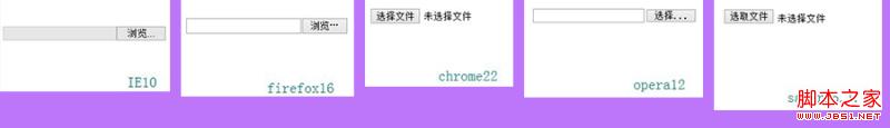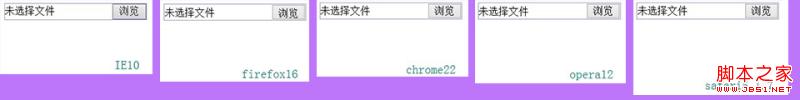 下面是file上传控件在IE10,firefox16,chrome22,opera12,safari5.1.7里的截图: