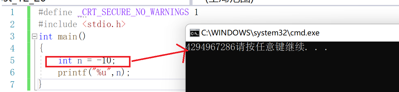 ps:观察下面两张图,心中是否有个疑问:为什么有时负数能被正常打印,有时却不可以呢?同样是整型数据在内存中存储的问题,接下来我们将会了解。