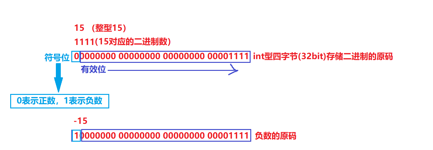 下图是一个正数和负数的原码: