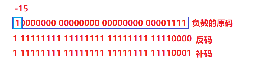 负整数:反码 :符号位不变,其他位按位取反(0-->1,1-->0)