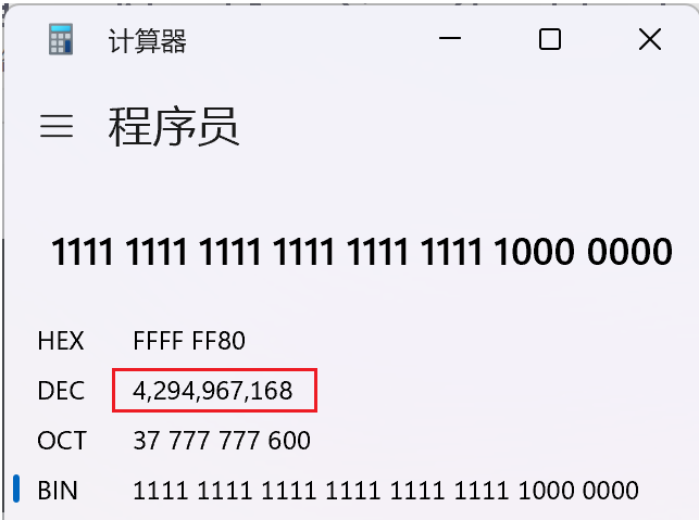 通过计算机换算得出结果为4294967168