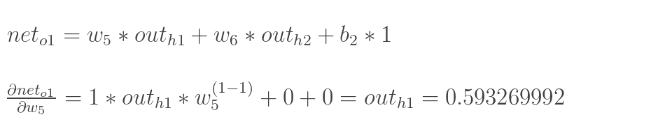 以权重参数w5为例,如果我们想知道w5对整体误差产生了多少影响,可以用整体误差对w5求偏导求出:(链式法则)