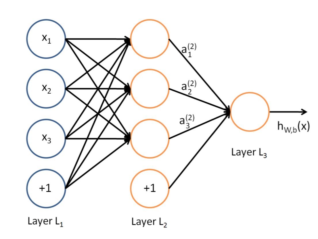 这是典型的三层神经网络的基本构成,Layer L1是输入层,Layer L2是隐含层,Layer L3是隐含层,我们现在手里有一堆数据{x1,x2,x3,...,xn},输出也是一堆数据{y1,y2,y3,...,yn},现在要他们在隐含层做某种变换,让你把数据灌进去后得到你期望的输出。如果你希望你的输出和原始输入一样,那么就是最常见的自编码模型(Auto-Encoder)。可能有人会问,为什么要输入输出都一样呢?有什么用啊?其实应用挺广的,在图像识别,文本分类等等都会用到,我会专门再写一篇Auto-Encoder的文章来说明,包括一些变种之类的。如果你的输出和原始输入不一样,那么就是很常见的人工神经网络了,相当于让原始数据通过一个映射来得到我们想要的输出数据,也就是我们今天要讲的话题。