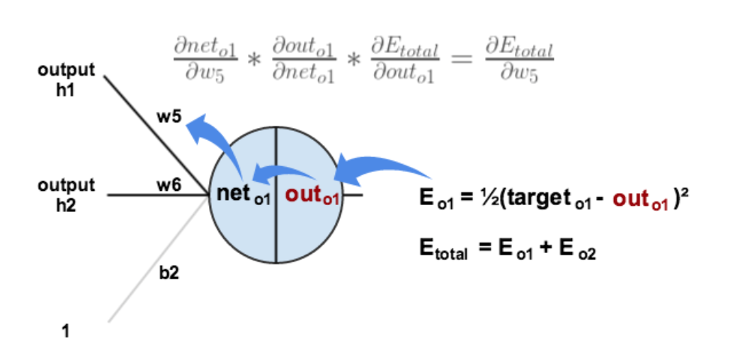 这样我们就计算出整体误差E(total)对w5的偏导值。