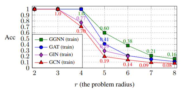 从图中可以看出,在邻居匹配问题中,随着GNN深度的增加,模型的精确度在下降。