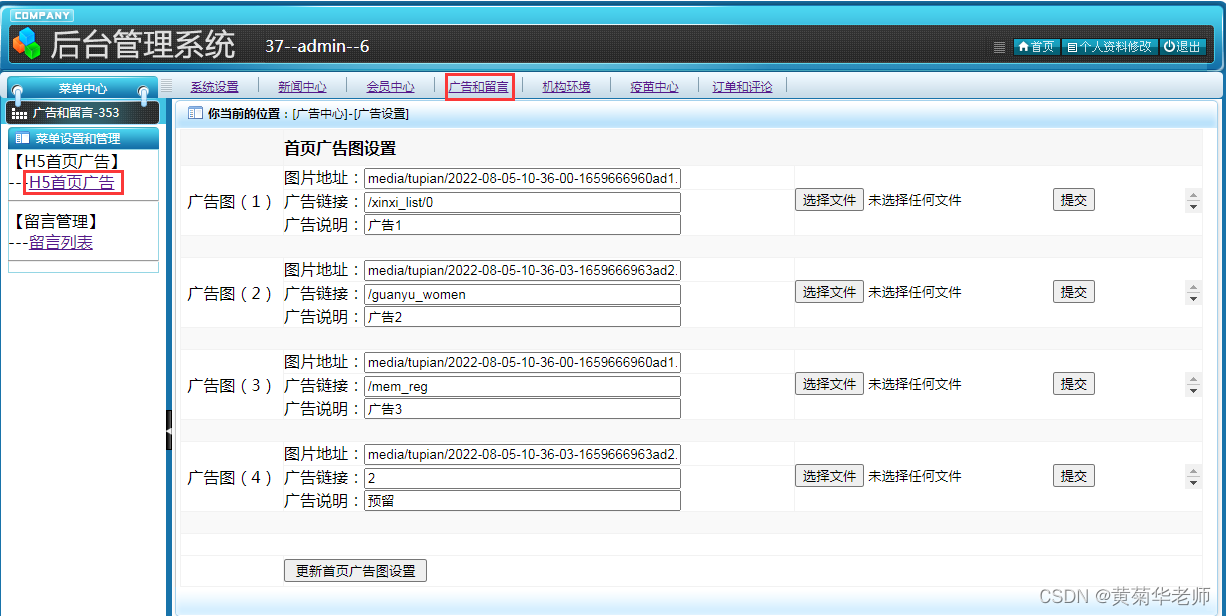 广告管理:设置小程序首页轮播图广告和链接