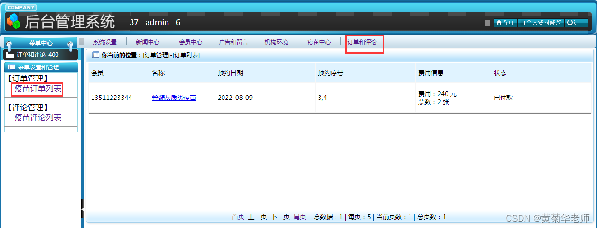 疫苗订单管理:支持付款状态修改,删除
