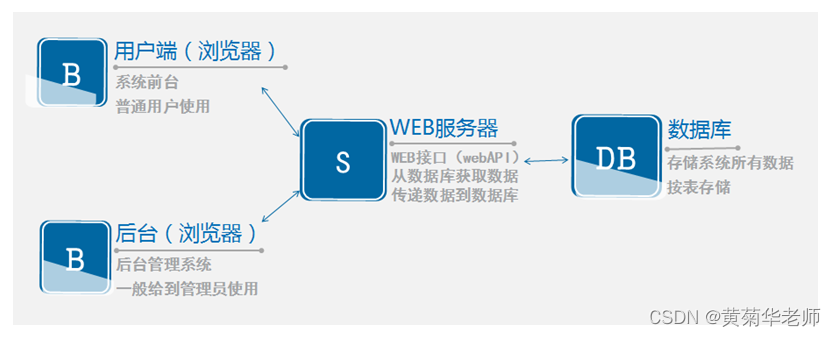 我们开发系统,常规有两个架构,一个BS架构(浏览器/服务器模式),一个CS(客户端/服务器端模式);基于Python(Django框架)的网站开发属于B/S架构(即浏览器和服务器架构模式),架构如图