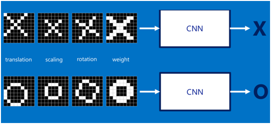 假设给定一张图(可能是字母X或者字母O),通过CNN即可识别出是X还是O,如下图所示,那怎么做到的呢