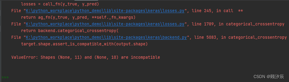 报错解决:ValueError: Shapes (None, 11) and (None, 10) are incompatible