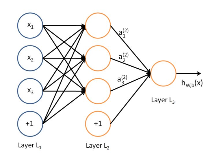 注意:Layer L1 为输入层,L2为隐含层,L3为输出层,h(x)为假设函数