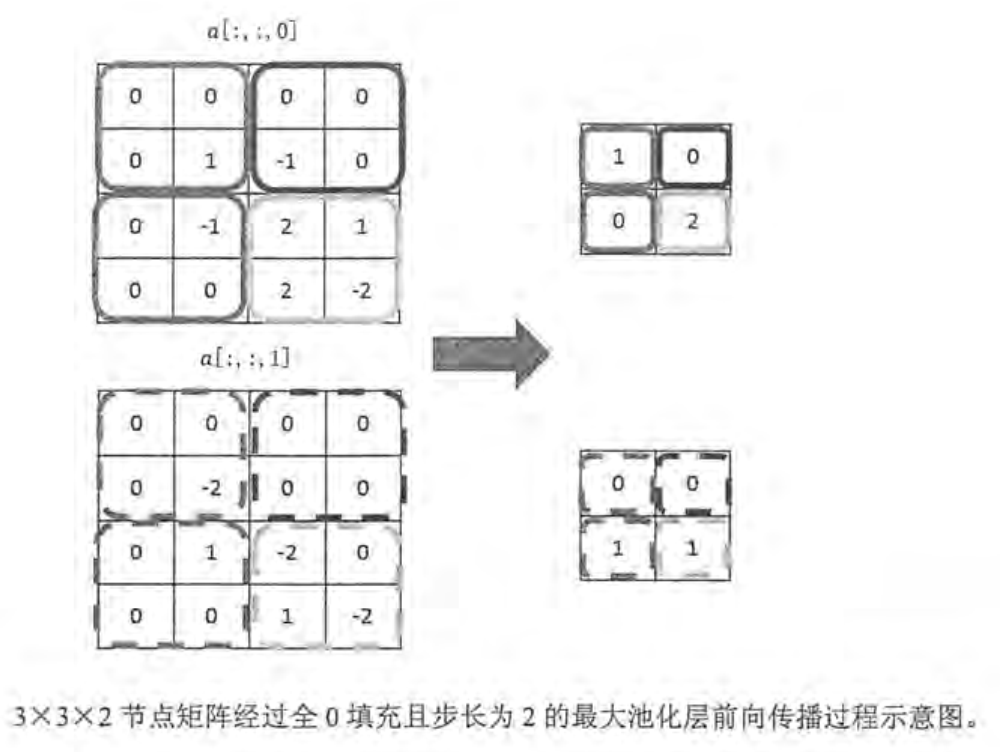 # 第二个参数为过滤器的尺寸,池化层的过滤器不可以跨不同输入样例或节点矩阵深度。