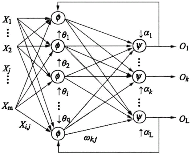 反馈型网络的结构与单层全互连结构网络相同。在反馈型网络中的所有节点都具有信息处理功能,而且每个节点既可以从外界接受输入,同时又可以向外界输出。
