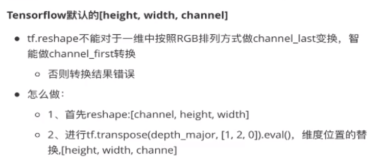 - 1 image (3072, ) —>tf.reshape(image, [])里面的shape是[channel, height, width], 所以得先从[depth height width] to [depth, height, width]。