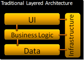 在 The Onion Architecture 中介绍了下图的洋葱图架构,从里到外是领域模型、领域服务、应用服务,外面的都会用到里面的内容,最外围的是容易变化的内容,如界面、测试和基础设施(如数据存储等)。这个图表明了以领域模型为中心,而不是以数据为中心。