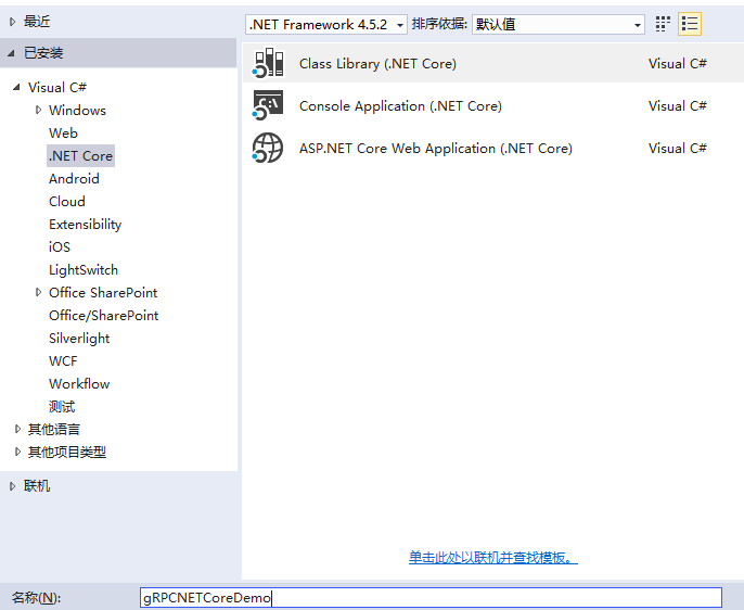 安装好Grpc 以后我们就可以来移植类库了,这里我们首先创建一个gRPCNETCoreDemo Class Library。