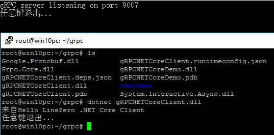 代码编写好以后,我们来执行gRPCServer ,然后使用dotnet run 执行 gRPCNETCoreClient。