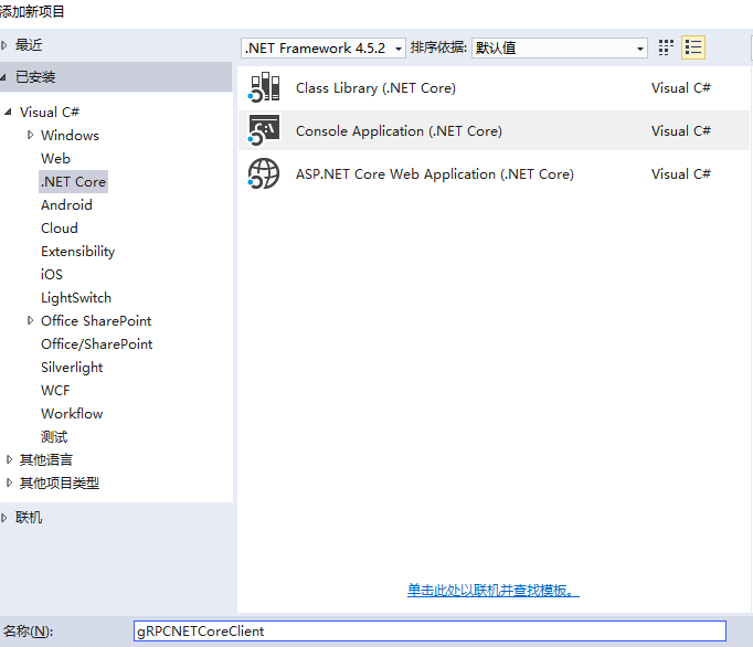 添加一个.NET Core 控制台应用 gRPCNETCoreClient