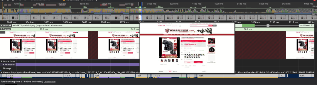 上图为商品详情页,我们可以找到在 2.8s 左右开始 3.08s 左右结束后基本跌零;