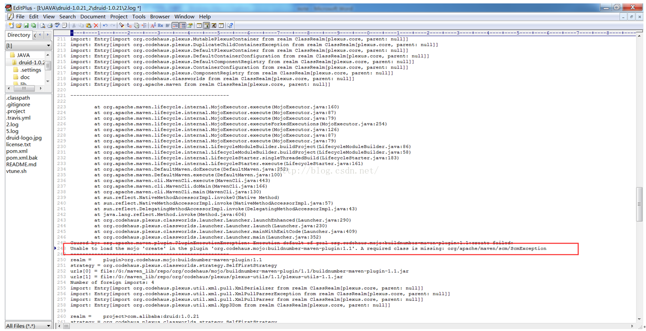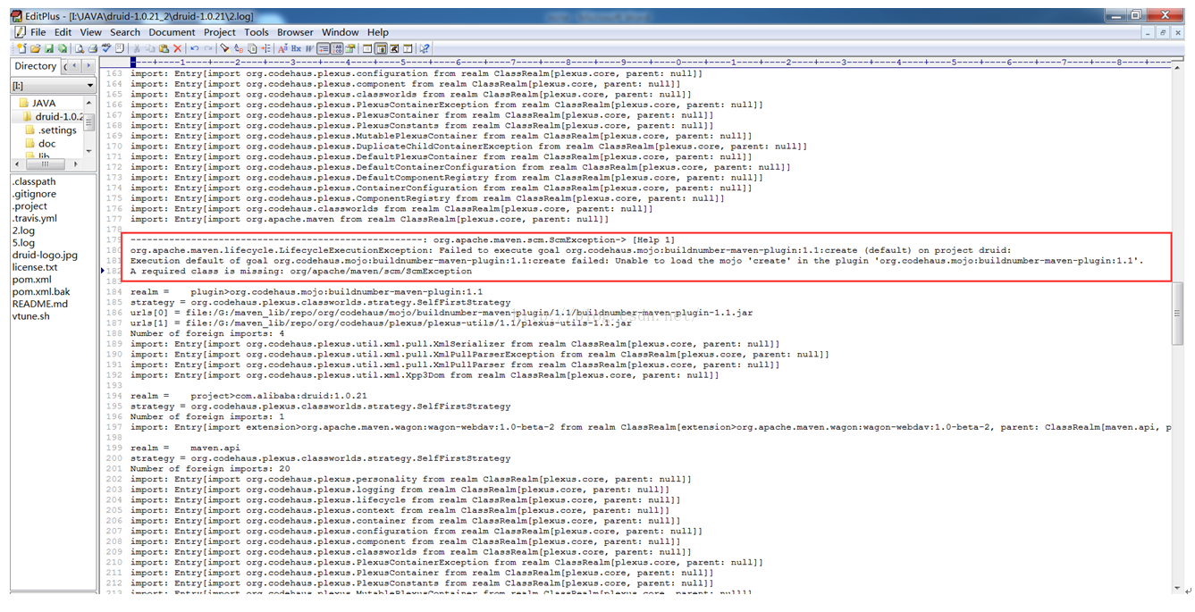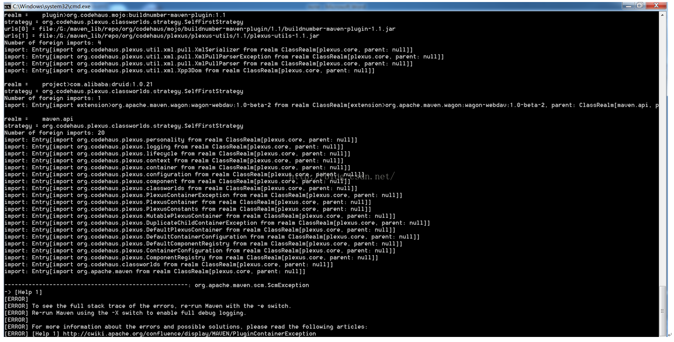意思是说,因为找不到ScmException 这个类,所以无法执行org.codehaus.mojo :buildnumber-maven-plugin这个插件。