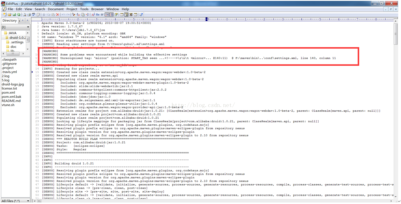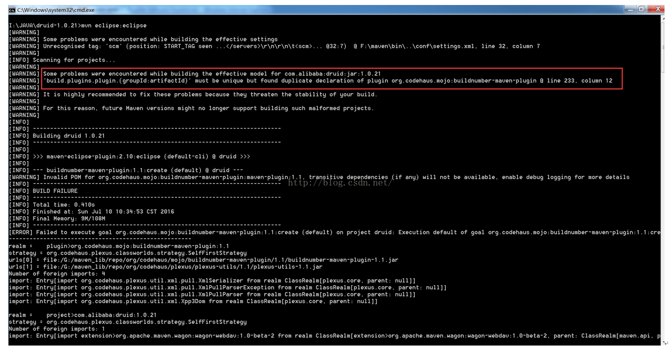 Some problems were encountered while building the effective model from com.alibaba:druid:jar:1.0.21