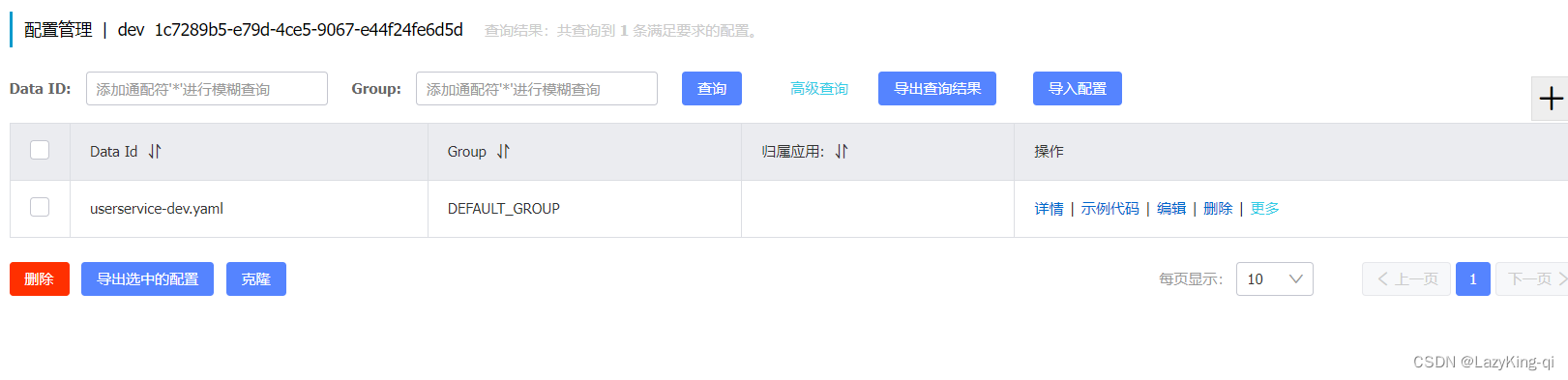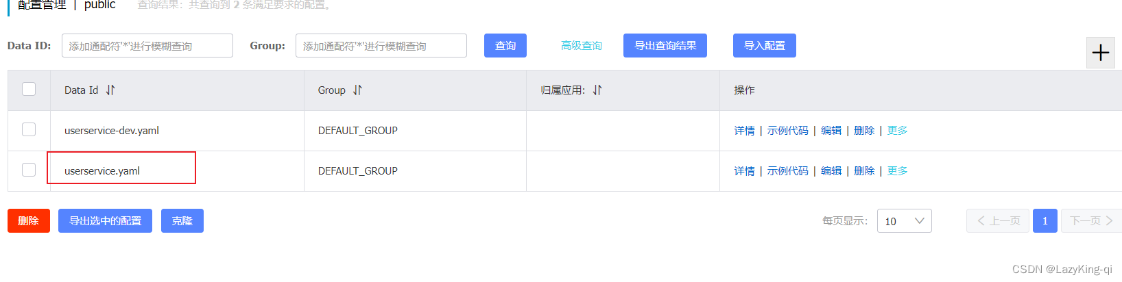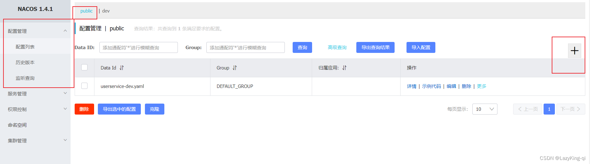 1、打开nacos控制台,点击配置管理,添加配置
