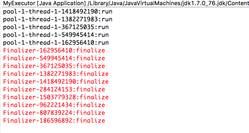 System.err.println(Thread.currentThread().getName() + "-" + this.hashCode() + ":finalize");