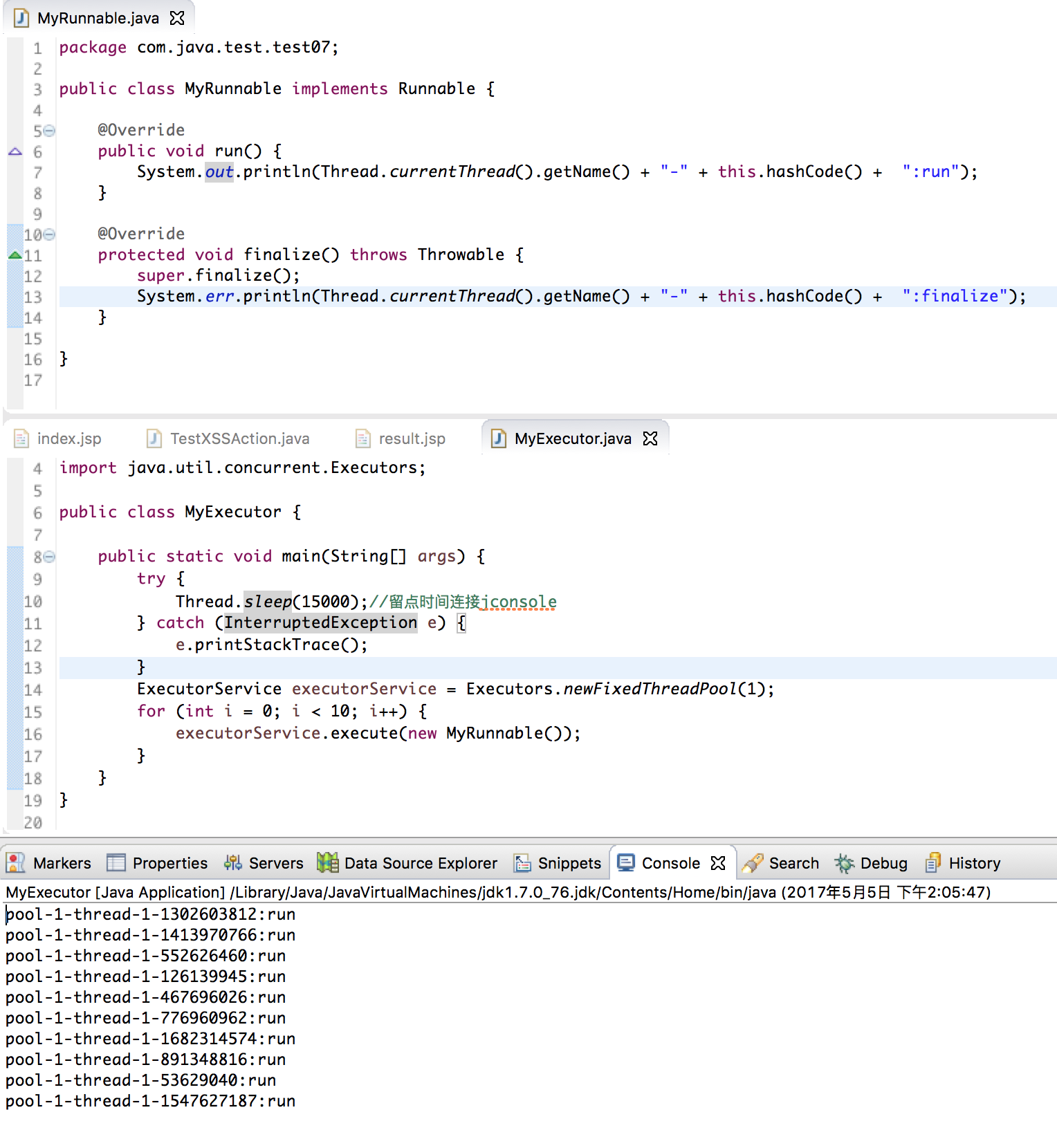 System.out.println(Thread.currentThread().getName() + "-" + this.hashCode() + ":run");
