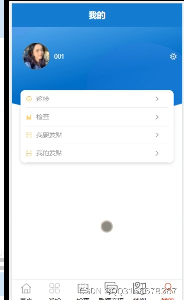 (b)用户进入系统前台可以实现首页、我的、巡检、检查、反馈交流、地图等功能