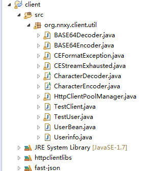 client端:TestUser中,方式与图片文件传输和捕获中client操作类似,区别在于JSONObject将json串解析成一个JSON对象。同时,把结果自动转换成一个Bean对象,而Bean对象类,却也仅仅作为第三方转换,如下关键代码: