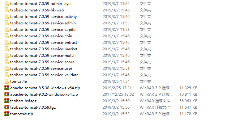 4、创建服务目录。我这里需要启动12个服务,service_validate,service_user,service_score,service_match,service_market,service_entrust,service_coin,service_capital,service_admin,service_activity,hk_web,admin_layui如图: