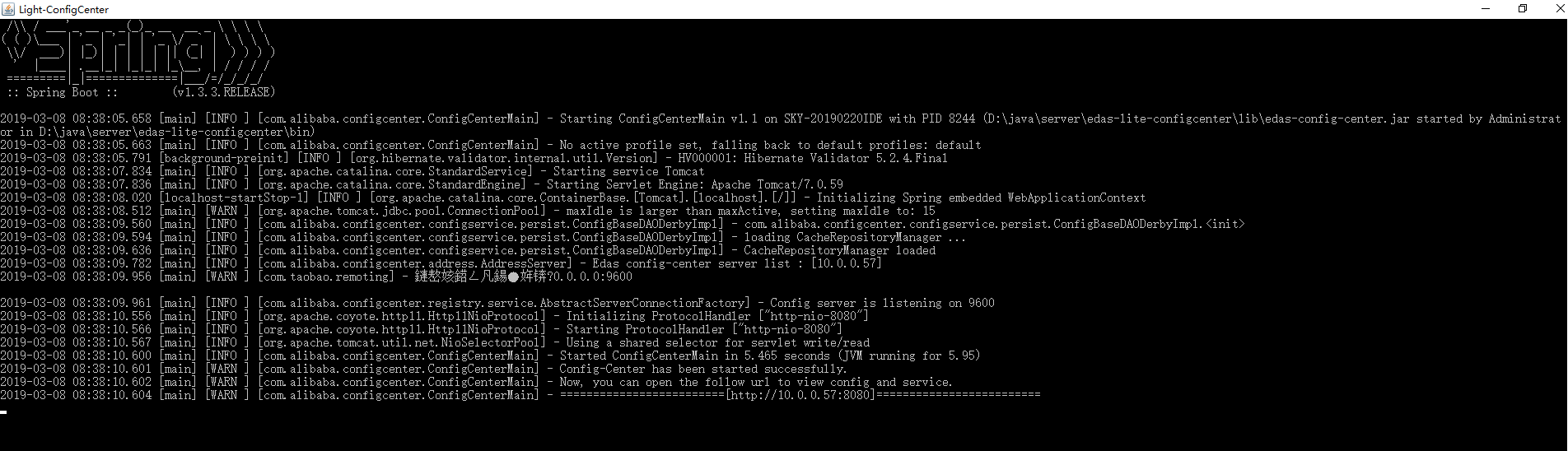 (3)进入解压目录(D:javaserveredas-lite-configcenterbin),双击startup.bat启动配置中心。启动成功如图: