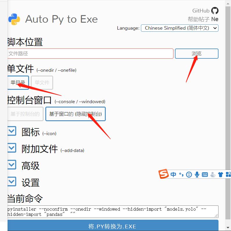 打开之后脚本位置就是你要打包的主程序,他会打包你所包括的其他文件