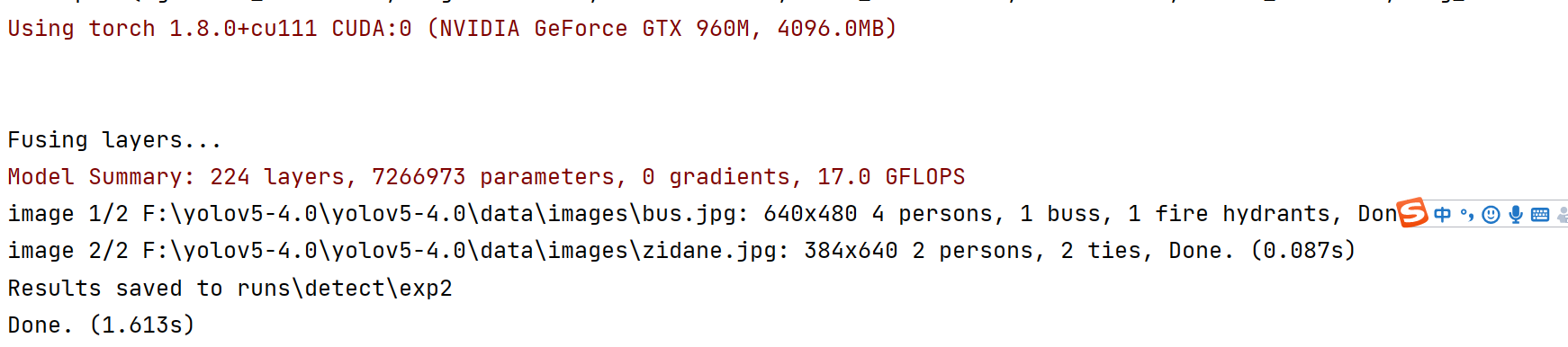 等待几分钟让他配置环境。完成之后就可以进行测试了,运行detect.py,设置device=0