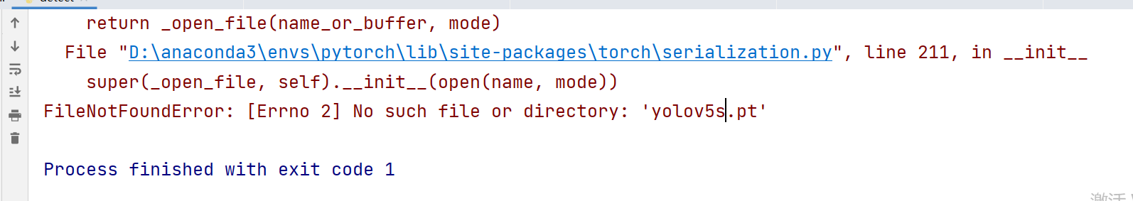 好的在意料之中:报错了,没有YOLOV5S.pt权重文件,大家可以在网上下载V4.0的。