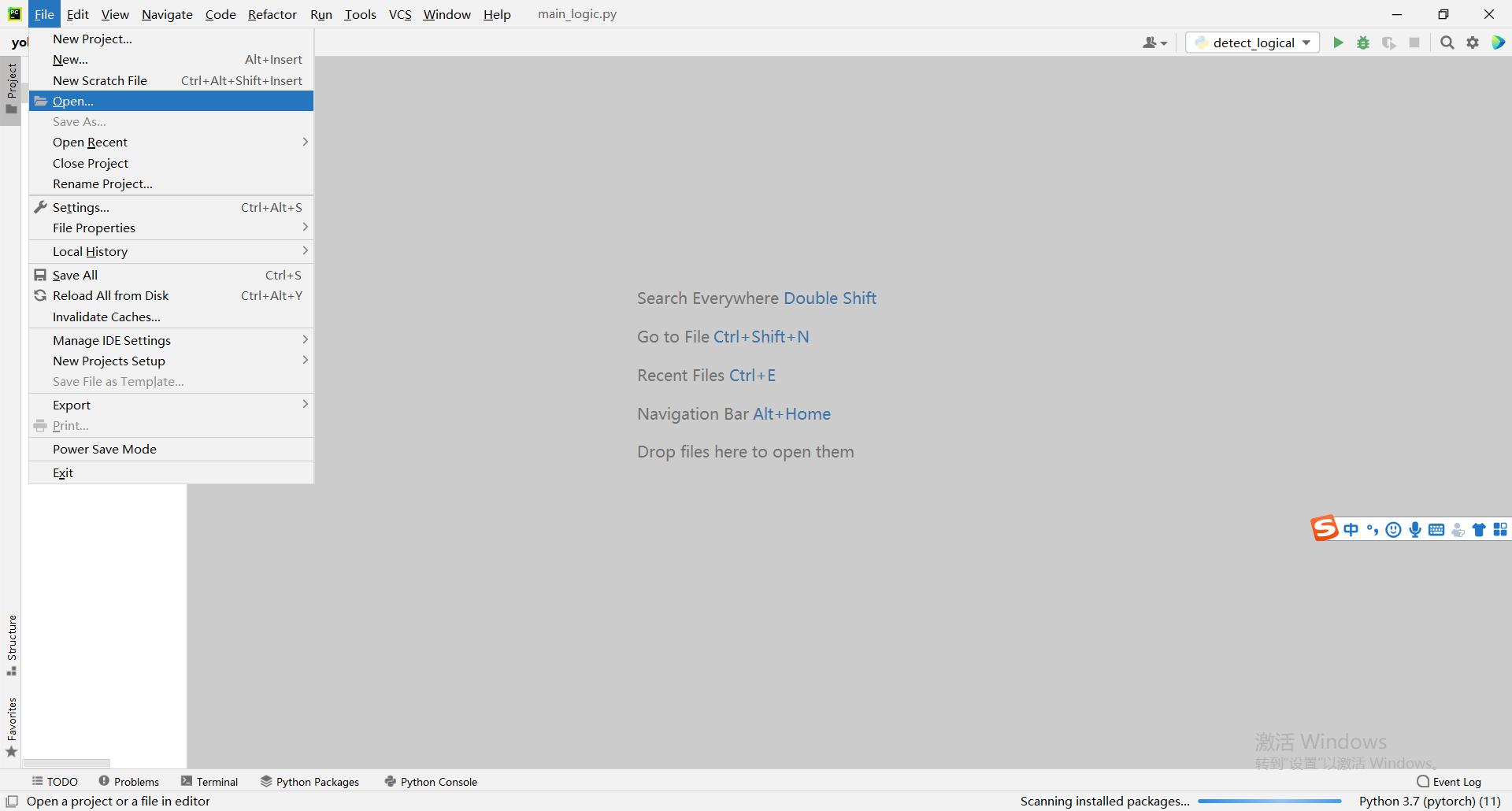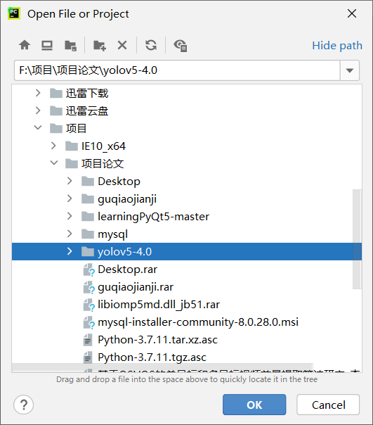 点击file-open打开项目点击我们刚刚下载的YOLOv5源码的文件:
