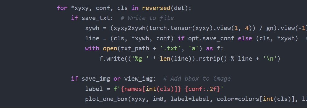 for *xyxy, conf, cls in reversed(det):