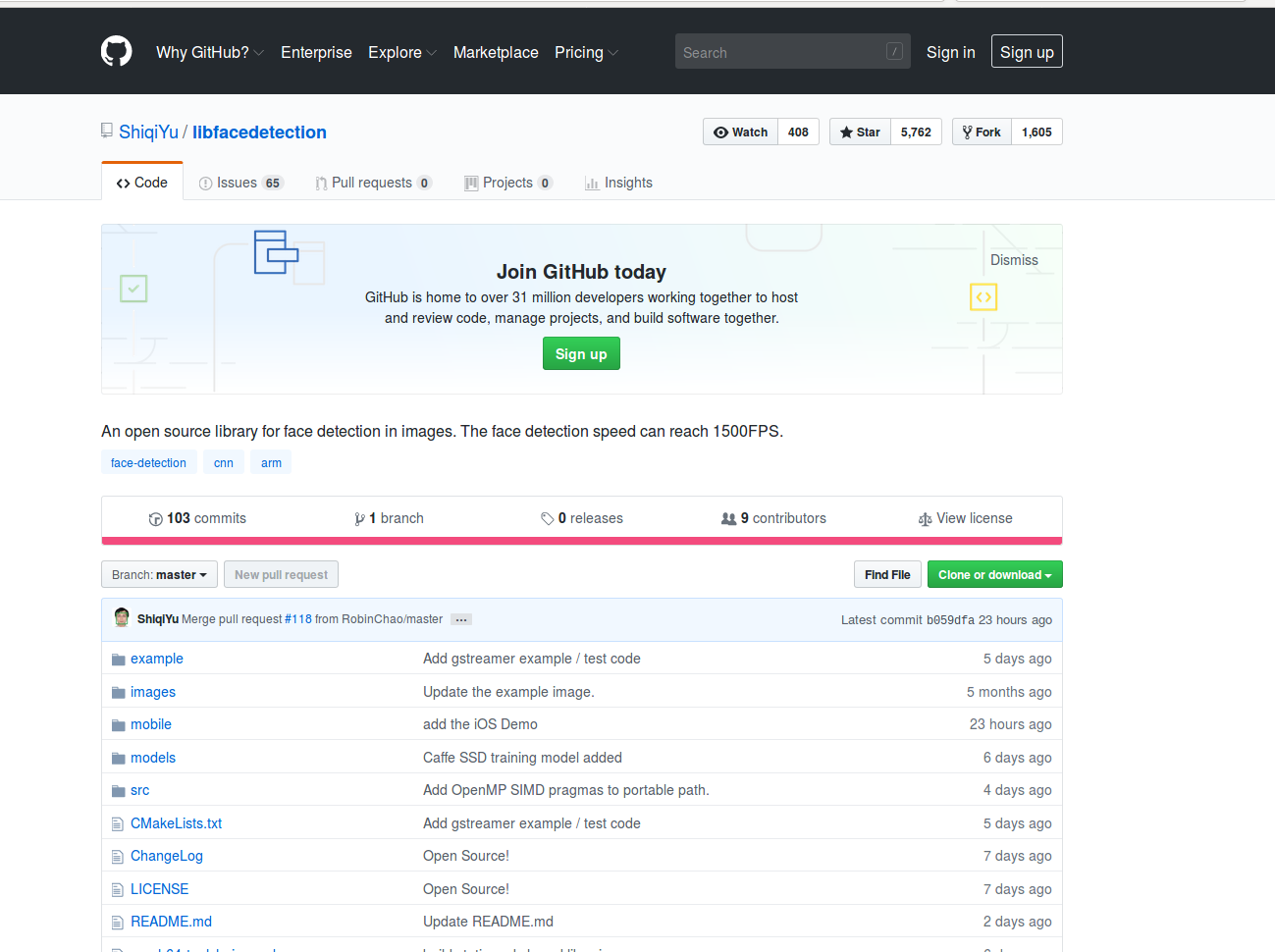 首先下载libfacedetection的源代码,源码地址:https://github.com/ShiqiYu/libfacedetection