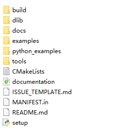 1、下载的dilb库后解压如下图所示,build是自己建立的。